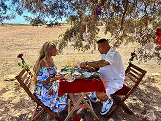 Finally at your Romantic Tour Cape Greco tour, you’ll arrive at the Tree of Lovers, a centuries-old juniper tree radiating peace and mystical energy. Lovingly decorated for you, it’s the ideal place to make a wish for your future, celebrate a special moment, or simply pause and enjoy the serenity together.